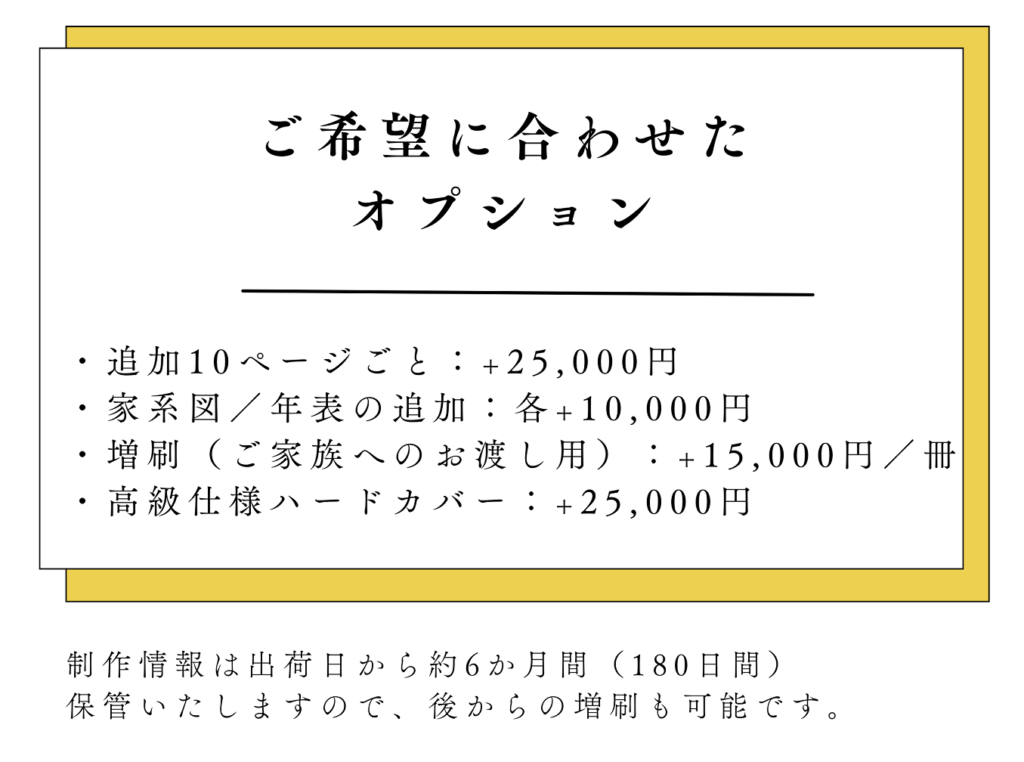 このたびは、私のかねてよりの念願である「〇〇家の歴史」の制作に携わっていただき、誠にありがとうございました。