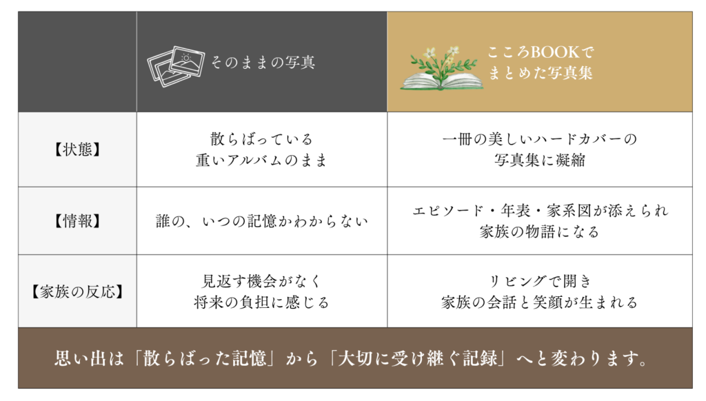 こころBOOKはお一人おひとりに合わせたオーダーメイド制作です。